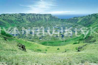 .......... Úzky vyšliapaný chodník sa tiahol plynulo nahor, po vonkajšom svahu krátera. Začal prudko stúpať do úbočia porasteného vysokou žltou trávou a čoskoro sme stáli na okraji krátera. Pod nohami nám ležalo veľké jazero lemované strmými svahmi.